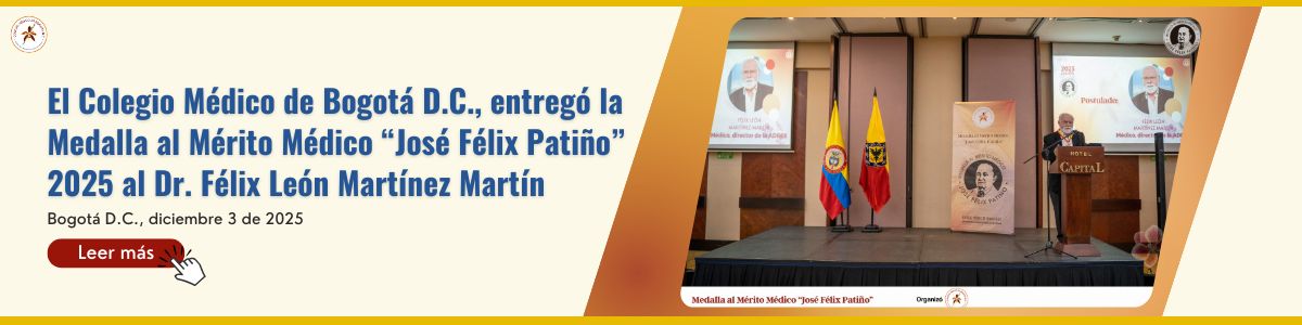 El Colegio Médico de Bogotá D.C., entregó la Medalla al Mérito Médico “José Félix Patiño” 2025 al Dr. Félix León Martínez MartínMiércoles 3 de diciembre de 2025El pasado 29 de noviembre de 2025, en el marco del Día Panamericano del Médico, el Colegio Médico de Bogotá...